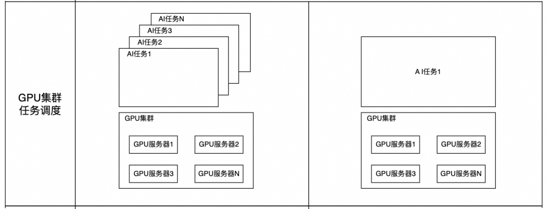 现阶段一方面GPU资源很紧俏,非常难购买,即使购买到,GPU卡之间的拓扑结果、多台机器之间的拓扑结果对任务的训练时间也有很大的影响;另一方面企业的AI任务多种多样,也不可能专门为每一种AI任务单独适配GPU卡分配。所以更多的期望是将有限的GPU资源池化后,由统一的平台实现这些GPU资源面对不同的AI任务,实现不同的资源调度,以便实现GPU资源利用率和AI任务预期结果的双赢的记过。