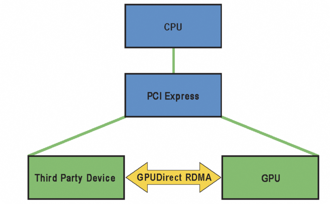 GPUDirect RDMA 是一种在 Kepler GPU和CUDA 5.0 中引入的技术,它利用 PCI Express的标准功能实现 GPU和第三方设备之间的直接数据交换。第三方设备包括网络接口、视频采集设备和存储适配器。GPUDirect RDMA 支持 Tesla 和 Quadro GPU。