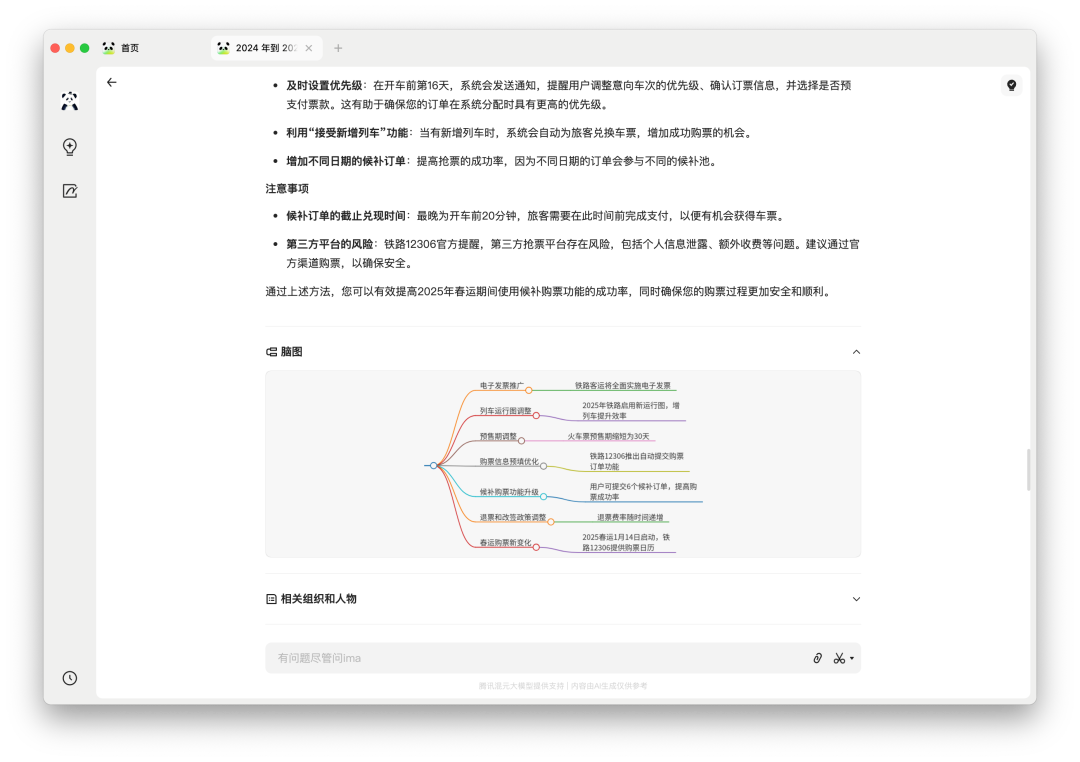 而当我们想进一步了解候补等情况下如何提升购票成功率时,ima 不仅会汇总以往的功能优化和实用技巧,还会标注注意事项和潜在的关键点,帮助我们快速抓住核心信息。