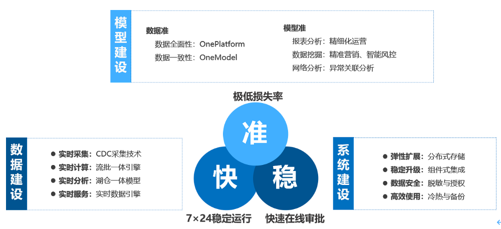 针对三农信贷供给中信用数据缺失的问题,建设基于三农金融服务大数据库,形成覆盖农户“还款能力”和“还款意愿”的大数据风险画像,构建“天、地、人”一体的三农风险信用指标体系。从全量风控维度,例如授信程序风险、授信集中度风险、借款用途风险、宏观经济风险、流动性风险、法律风险、经营风险等,针对涉农贷款中存在的冒名贷款、骗取贷款、违法放贷等欺诈及信用问题,构建风险监测与预警的模型体系。针对农村居民底层信息来源匮乏,导致金融可得性差,风险分析识别难的问题,研究数理统计和机器学习中的预测、聚类和风险计量等关键技术,建立村集体、农企、农户、农民的风险评级、额度定价、贷中预警等风控模型体系,实现数字授信、助推智能决策。在数据分析和决策制定的过程中,模型的准确性至关重要。模型准确量化意味着不仅要确保模型能够捕捉到数据中的关键模式和趋势,还要能够精确地预测和估计未来的情况。为了实现这一目标,需要采用先进的算法和计算技术,对数据进行深度挖掘和精细处理。此外,模型还需要经过严格的验证和测试,以确保其准确性和可靠性。量化模型的准确性通常通过一系列指标来衡量,这些指标不仅可以帮助评估模型的性能,还可以指导进行模型的优化和改进。通过不断迭代和调整,可以使模型更加准确地反映实际情况,为决策提供有力支持。在大数据时代,数据的快速接入对于系统的运行效率和响应速度至关重要。数据快速接入意味着能够迅速地将各种来源的数据整合到系统中,以便进行进一步的分析和处理。为了实现这一目标,需要构建高效的数据接入平台,支持多种数据格式和传输协议。同时,还需要确保数据接入的准确性和安全性。在数据传输过程中,需要采用加密和验证技术,确保数据不被篡改或泄露。在数据接入后,还需要对数据进行清洗和校验,确保数据的准确性和一致性。通过数据快速接入,可以实现数据的实时更新和动态处理,为系统提供源源不断的数据支持。同时,还可以根据实际需求,快速调整数据接入策略和规则,以满足不同场景下的数据需求。从业务运行层面来说,分布式存储支持弹性扩展、组件式集成支持稳定升级、脱敏与授权支持数据安全、冷热数据和备份数据的高效使用是中电金信保证相关平台稳健运行的核心技术及优势。同时为了实现系统稳定运行,需要从其他多个方面入手。首先,需要构建健壮的系统架构,确保系统具备良好的容错能力和可扩展性。其次,需要采用高效的算法和计算技术,优化系统的性能和响应速度。此外,还需要建立完善的系统监控和日志记录机制,及时发现和解决潜在的问题和故障。在系统运行过程中,需要定期进行维护和升级工作。这包括修复已知的漏洞和缺陷、更新软件和硬件组件、优化系统配置等。通过定期维护和升级,可以确保系统始终保持最佳的运行状态,为用户提供稳定可靠的服务。同时,还需要建立完善的应急响应机制。在发生系统故障或异常情况时,能够迅速启动应急预案,采取有效的措施进行处置和恢复工作。这不仅可以减少故障对用户的影响和损失,还可以提高用户对系统的信任度和满意度。
