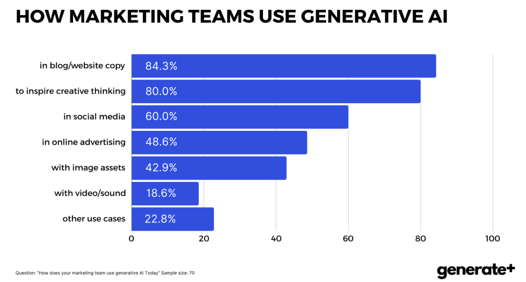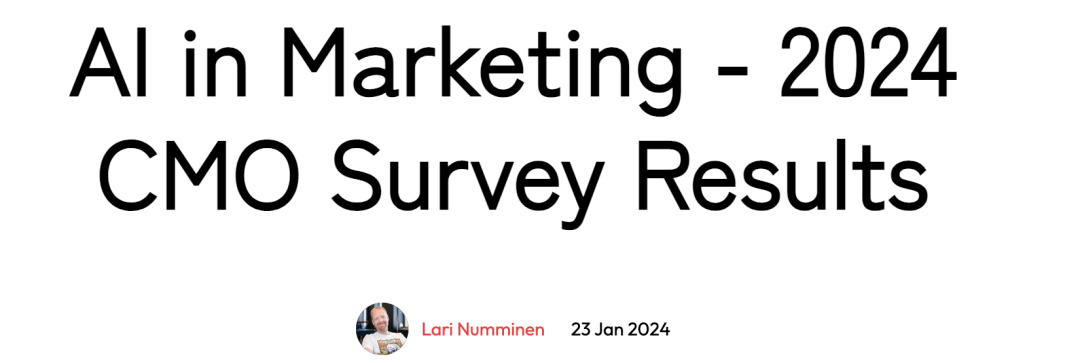 「博客/网站文案」:84.3%的营销团队在使用它撰写内容「创造性思维」:人工智能还在80%的营销团队中充当创意灵感的源泉。它参与头脑风暴,提出新想法以及可能被忽视的新视角。「社交媒体」:使用率高达60%,能创建针对性、个性化内容,实现千人千面。「在线广告」:48.6%使用人工智能来优化在线广告。通过分析消费者行为和偏好,提高转化率,节约营销预算。「图像资产」:42.9%的营销团队使用它来创建或增强视觉内容,使图像更符合品牌叙事,更吸引目标受众。「视频/音频」:18.6%的团队利用人工智能制作或编辑视频和播客。缩短了制作时间和成本的同时,保持超高品质。AI工具不再只是可选的附加品;它们已经成为营销人员工具箱中的重要组成部分。「大多数营销人员喜欢ChatGPT」:目前超过60%的营销团队使用付费的ChatGPT Plus,生成博客文章、邮件内容以及聊天机器人脚本等。「各种图像编辑工具」:在视觉方面,像Midjourney、Adobe Firefly和Canva这样的AI工具是营销界的宠儿。Midjourney帮助品牌通过图像讲述故事。Adobe Firefly作为新兴的参与者,利用Adobe丰富的设计传统提供先进的编辑功能,创作出高质量的视觉内容。Canva凭借其用户友好的界面,帮助营销人员轻松制作出专业级的图片,即便没有设计背景。「文案与文本编辑」:Jasper、Writesonic、Superlines.io、Sudowrite、SurferSEO和Grammarly这样的工具正在帮助营销人员写得更好、更快。Jasper和Writesonic走在前列,提供AI驱动的创意内容生成,贴合品牌的语气和风格。Superlines.io和Sudowrite则通过提供独特的写作辅助工具,提升创意和效率。对于想要优化内容以适应搜索引擎的用户,SurferSEO则可以指导他们创作出符合SEO标准的内容,提升排名。Grammarly仍然是确保写作语法准确和清晰的重要工具,这是专业沟通的关键环节。「声音和音乐」:尽管视频和音频编辑的AI应用在芬兰没有文本和图像工具那样普及,但它们正在逐步渗透市场,对于希望制作视频内容和播客的品牌来说至关重要。「其他AI应用案例」:HubSpot的AI功能在CRM和内销营销策略中提供支持,而Figma等工具则引入AI来简化用户界面的设计过程。近43%的营销领导者准备为生成AI投入预算。这些早期采用者将AI视为创新的催化剂,而不是成本,预计AI将从提升效率、创造个性化客户体验上带来收入增长。约40%仍在观望,挣扎于是否为人工智能 (AI)预留预算。这种不确定性源于多个因素。对一些人来说,衡量人工智能所承诺的投资回报率 (ROI) 是个挑战;而对另一些人来说,如何确保人工智能工具与他们的营销策略相一致,而不仅仅是为了跟风而被采用。这个群体可能采取了一种谨慎的态度,寻求早期使用者的成功经验,或等待更明确的指标来判断人工智能是否在营销中带来长期价值。剩下的17%的首席营销官选择在2024年不增加人工智能的支出。他们的理由可能多种多样,比如预算限制、认为传统营销更有效等。这个群体可能采取了“观望”的态度,待市场进一步成熟后再投入资源。深入“赞成”阵营,这些领导者不仅在投资人工智能,还将其战略性地整合到核心营销功能中。他们认识到人工智能可以增强对客户的洞察力,大规模生成内容以及让日常工作更加自动化。希望通过技术采纳创造竞争优势,提供更个性化和更具吸引力的客户体验。“犹豫不决”的首席营销官反映了更广泛的担忧,例如数据隐私、团队技能提升是否跟得上,AI解决方案能够与现有的营销工具(技术)无缝集成等。尽管决策上存在分歧,这些领导者共同的认识是:人工智能不仅仅是一个短暂的趋势,而是营销领域的变革力量。无论他们是现在投资、稍后投资,还是在评估其他优先事项,这些首席营销官都明白,人工智能在营销中的角色只会持续增长。AI为市场营销团队提供了只能用“超人”来形容的好处:「执行速度」:90%的营销团队报告称,AI帮助他们更快地完成任务。在一个把握时机才能掌握先机的领域,这种速度是无价的。比如快速了解市场以及消费者的喜好趋势等。「创意灵感」:AI工具不仅仅是处理数据的工具;它们也被视为创意的来源。88.6%的营销人员发现,AI激发了更多的想法和创造性思维,提供了新的视角和新颖的解决方案。「任务自动化」:大约85.7%的受访者欣赏AI能够自动化手动和重复的任务。这不仅提高了效率,还减少了人为错误的可能性。「战略聚焦」:随着AI处理日常任务,77.1%的营销团队可以将更多时间用于战略工作。这种从战术执行到战略规划的转变正在显著影响品牌的长期成功。「质量提升」:AI不仅仅是做事情更快,它还能做得更好。60%的营销人员提到由于AI的数据驱动洞察和精准性,自己的工作质量有所提高。「技能发展」:对于52.9%的营销团队来说,AI是一个学习的机会。随着了解AI工具的应用,他们获得了新技能和知识,在竞争激烈的环境中保持领先。所有这些AI工具的共同主题是它们能够处理复杂任务、分析海量数据,并大规模生成洞察以及相关内容。提高效率的背后,是让营销人员能集中精力进行战略思考和创造。随着人工智能能力的不断扩展,营销领导者正在重新调整他们对合作方和自由职业者的期望。85.7%的受访者希望SEO代理机构利用AI,这表明代理机构需要利用AI的数据处理和分析能力来提升其自然搜索策略。对于SEM代理机构,77.1%的市场营销领导者期待其使用AI来优化广告支出