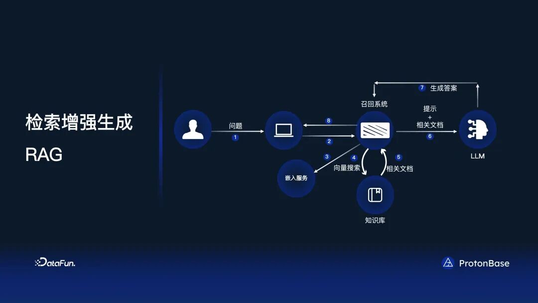 把向量搜索技术和大模型上下文学习的能力相结合,就发展出了检索增强生成技术,也就是 RAG。当用户提交一个问题,比如“靠近西湖适合一家四口人居住并且简约风格的民宿”,我们先让大语言模型改写这个问题,然后用文本嵌入模型为改写好的问题生成嵌入向量。接下来再通过向量搜索找出跟这个问题对应的嵌入向量最近的一些嵌入向量所对应的民宿。然后再把这些民宿的描述以及用户的问题同时作为上下文输入给大语言模型,大语言模型就可以通过刚才所说的上下文学习(也就是 In-context-learning)的能力去理解这些信息,并且根据这些信息给出答案。