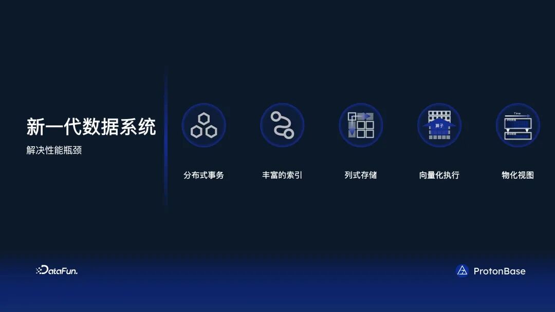 分布式 Data Warebase 能够存储所有的数据、信息和知识:它通过关系模型存储结构化的数据;通过文档模型也就是 JSON 这种方式存储半结构化的数据;并且通过高维向量去存储从传统意义上的非结构化数据中提取的知识。它能够支持简单查询、关键词查询、以及汇总分析这类信息提取的需求,也能够通过向量搜索去提取知识。分布式 Data Warebase 在性能、正确性、和实时性上挑战可能的物理极限。分布式 Data Warebase 给用户提供极简的体验,它兼容已有的生态,减少学习成本,最大限度地发挥现有生态工具的能力。它通过隔离去保证不同场景之间互相不影响。通过自适应保证它不仅在最苛刻的业务场景达到性能、正确性、和实时性的最优,而且在用户的实际场景里也能够挑战极限,达到具体场景里性能、准确性、和实时性的最优。
