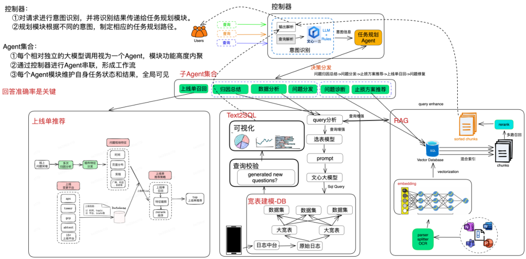 - 控制器:控制器负责对查询请求进行意图识别,并将识别结果传递给任务规划模块。根据不同的意图,制定相应的任务规划路径,并对任务执行结果进行解析和调整,最终将结果返回给用户。