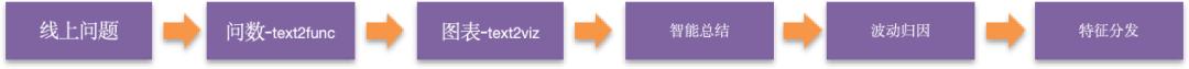 整体的构建思路依然是帮助业务更加有效率的分析解决线上问题。当业务方遇到线上问题时,首先是提供业务部门以自然语言提问的能力(Text2Func);其次,根据提问结果生成合理的图形化界面;接着,对返回的结果进行智能总结;最后得出业务问题的归因分析结果。整体功能设计如下: