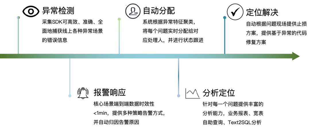 为了协助业务实现问题端到端闭环的目标,线上问题的智能分析需满足以下功能: