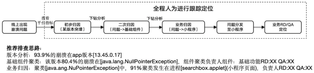 - 问题分发:当出现线上问题时,通过问题现场的特征分析将问题指向负责该模块的组件以及RD/QA。